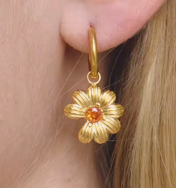 Orange flower earrings