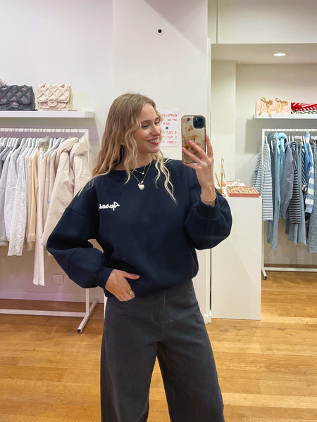 Model 1m71 draagt one size, valt losjes. Trui bevat fleece en zit mega comfortabel. Vooraan staat het woord : apres ski in het klein