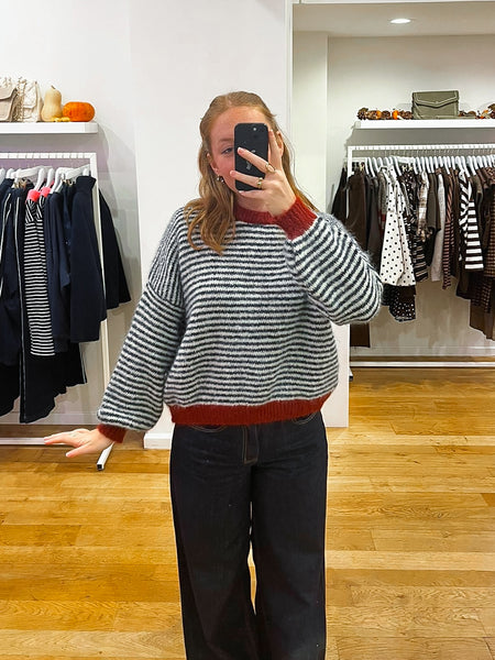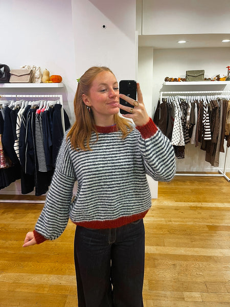 Navy + bordeaux striped sweat